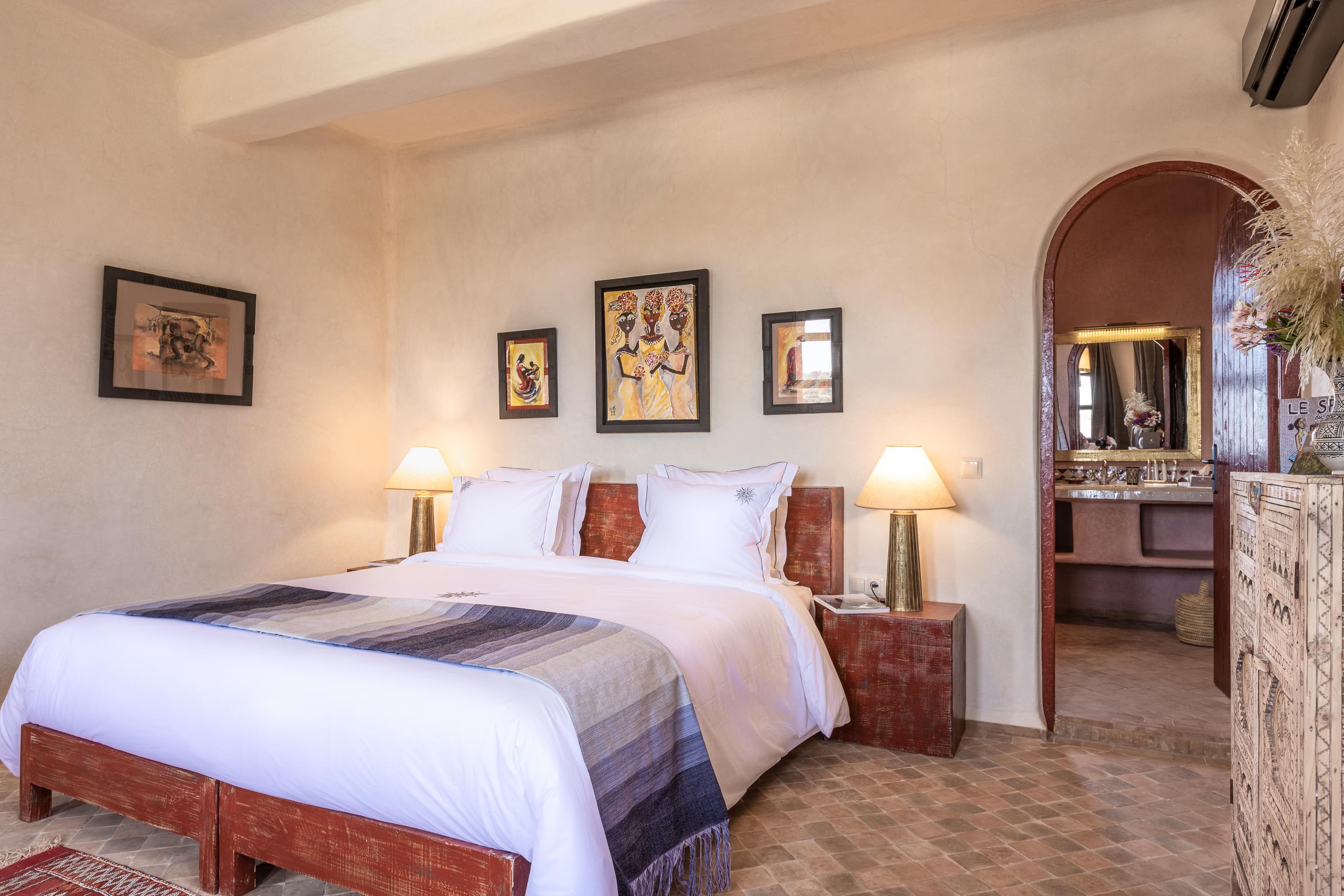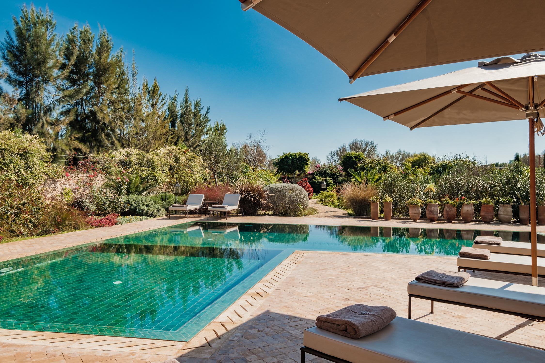 Six grandes villas (de 200 à 500m2), établies à l’entrée du domaine, accueillent les familles et les tribus dans un raffinement et une intimité absolue. Dotée de trois chambres avec chacune leur salle de bains, la Villa Jasmin peut recevoir jusqu’à 9 personnes souhaitant allier indépendance et service hôtelier. Une gouvernante, présente chaque jour, prépare le petit-déjeuner et autres repas à la demande. Entourée d’un jardin paysager, chaque villa dispose de sa piscine chauffée. Un autre moyen de vivre pleinement l'expérience du Jardin des Douars, de manière totalement exclusive...